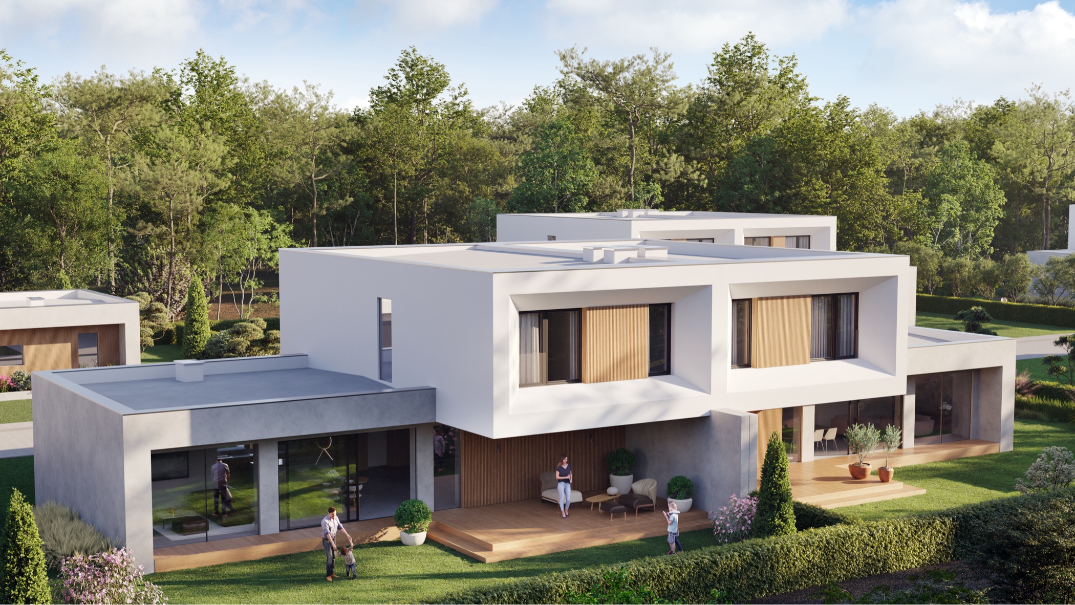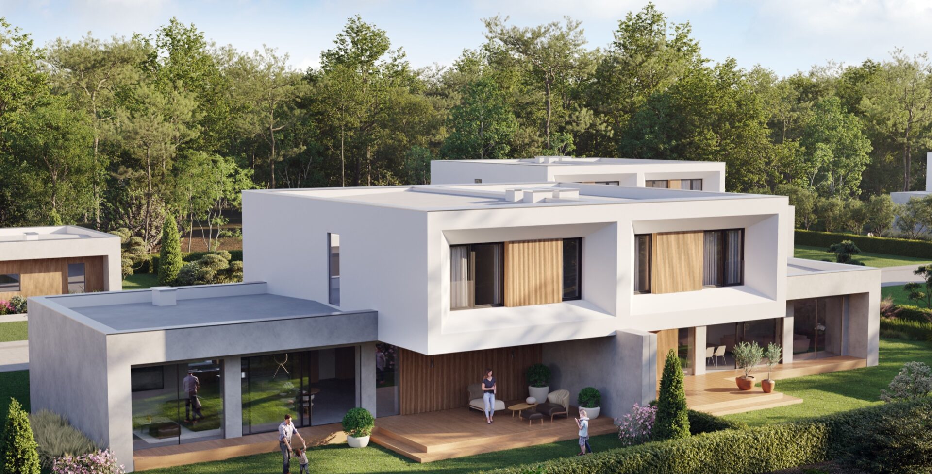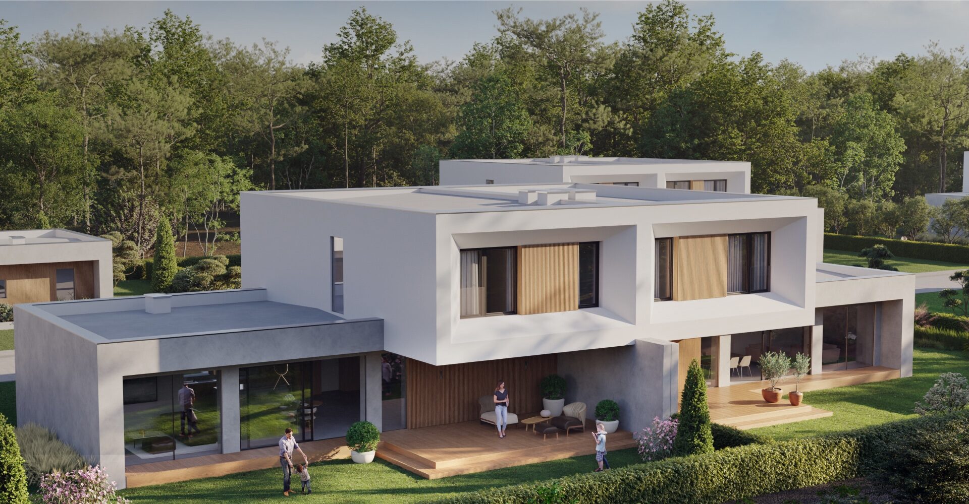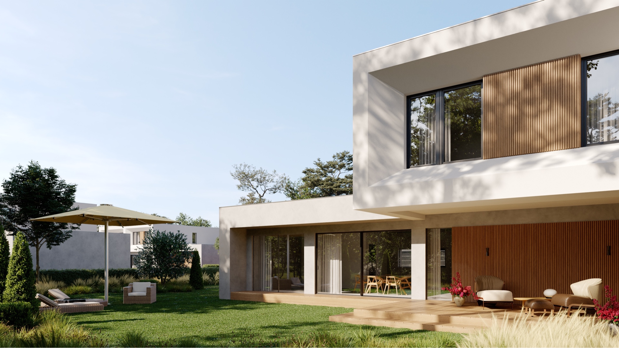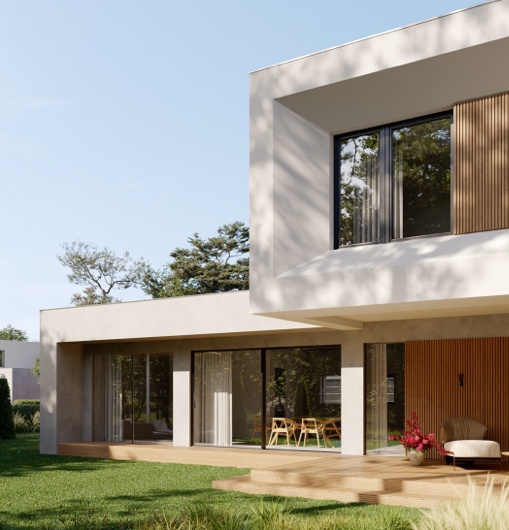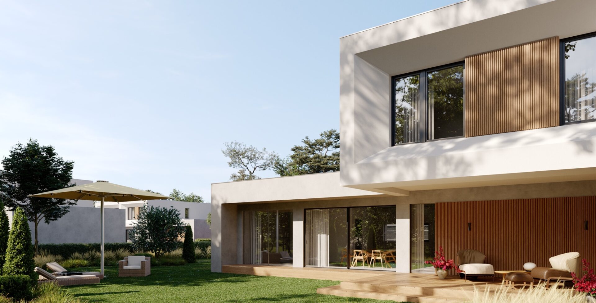Trzy niezależne zespoły pracowały nad każdym detalem architektonicznym domów, aby zaoferować naszym klientom unikalny design, funkcjonalny rozkład czy ekologiczne i energooszczędne rozwiązania. Dlatego sypialnia master ma własną garderobę i łazienkę z widokiem z wanny na ogród, a salon jest połączony z tarasem i ogrodem poprzez przeszkloną „ścianę”. Chcemy żyć w ciszy, spokojnie, otoczeni przyrodą.