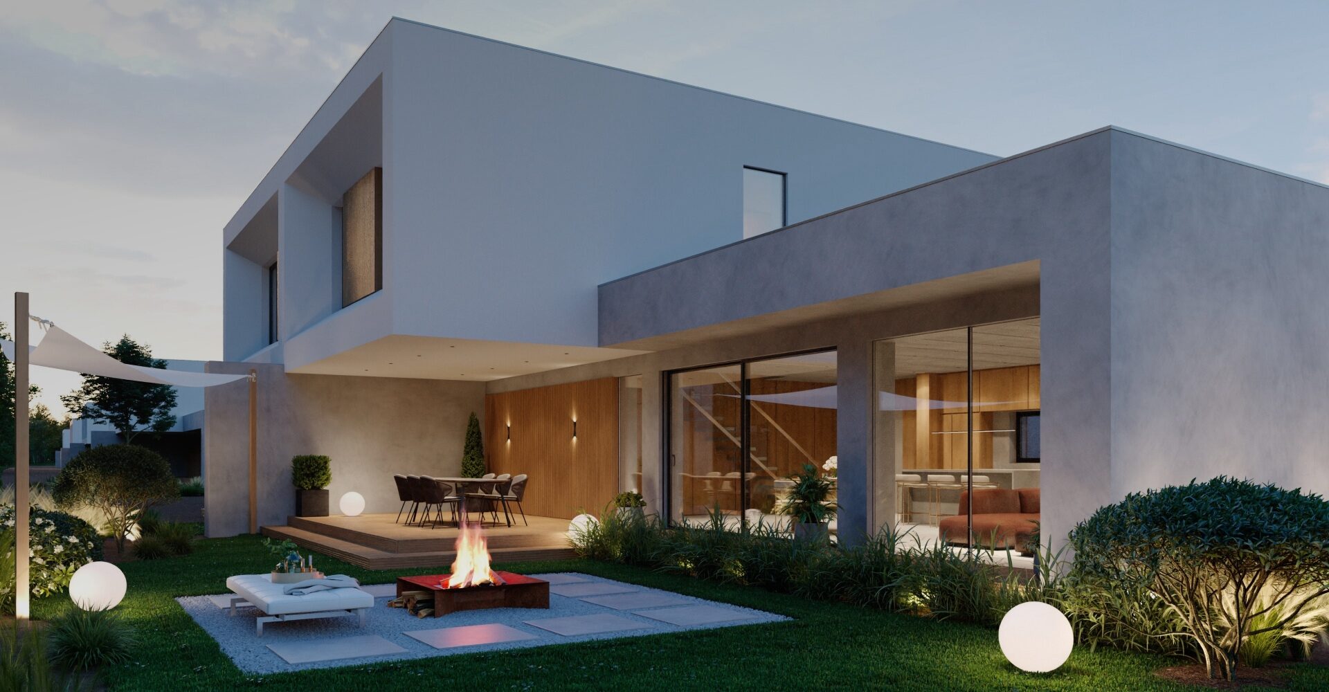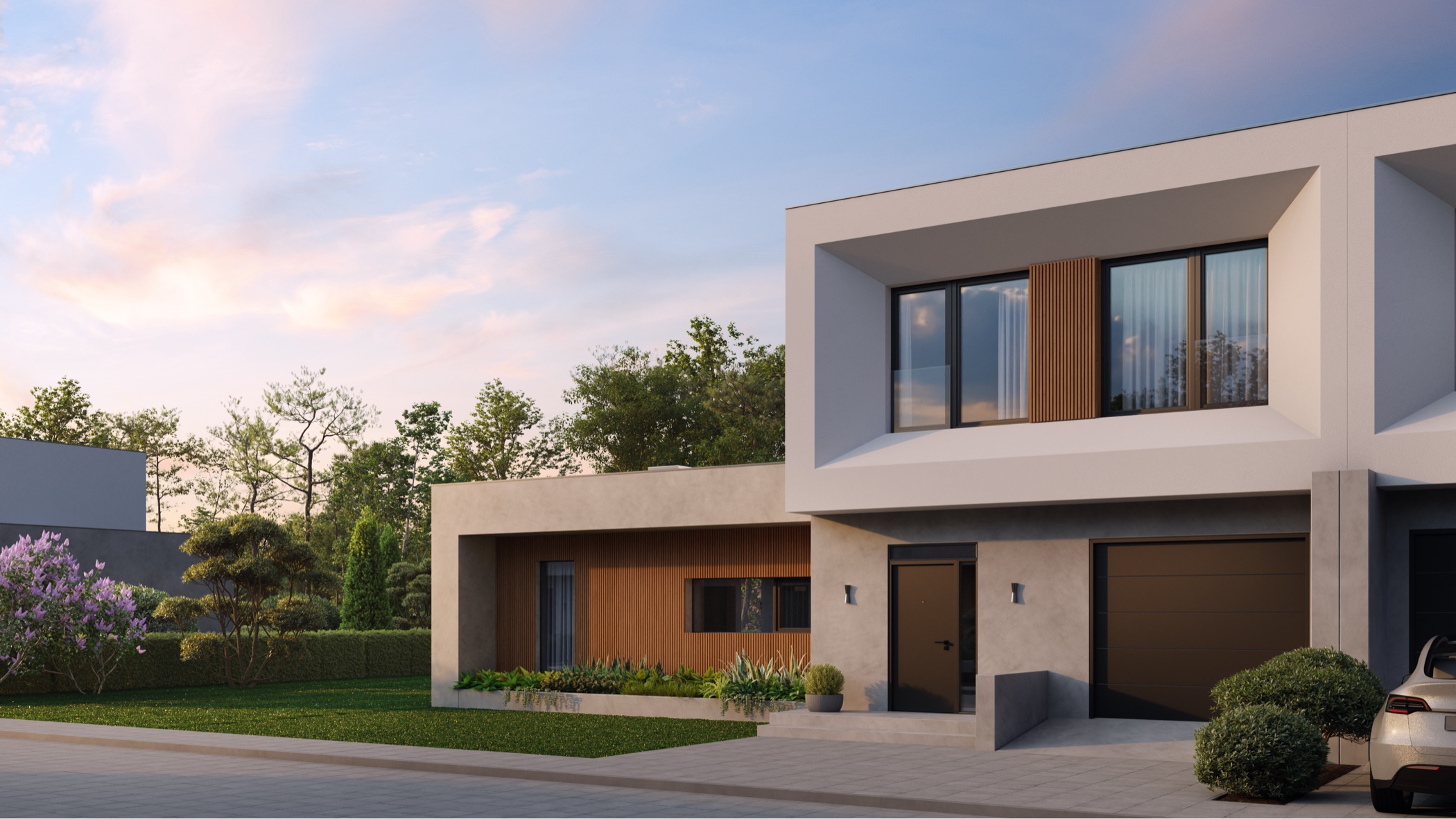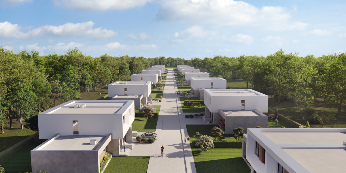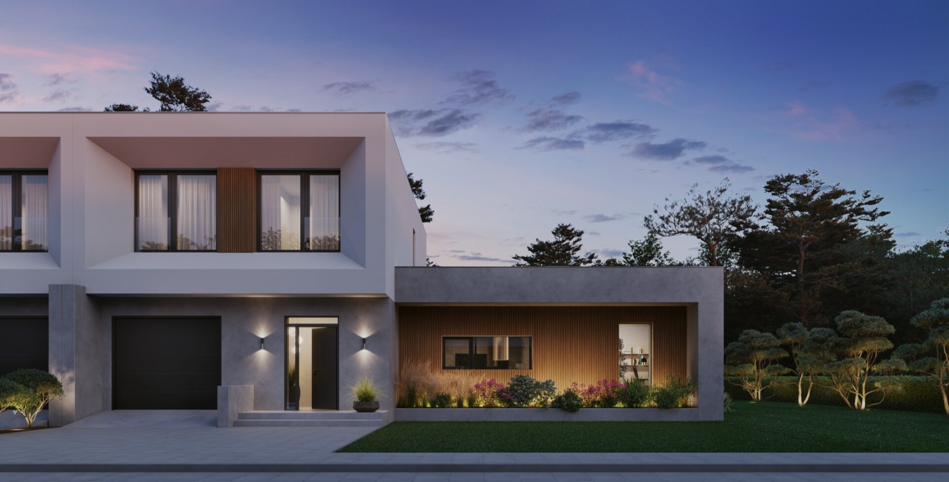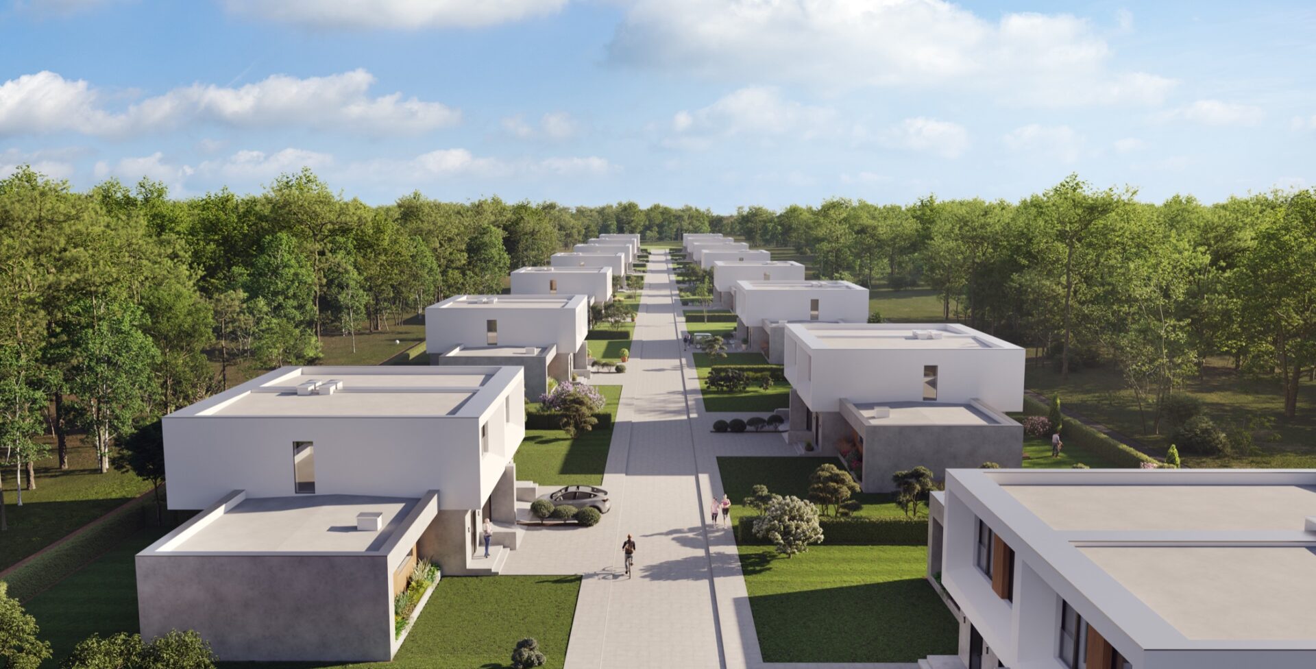 Trzy niezależne zespoły pracowały nad każdym detalem architektonicznym domów, aby zaoferować naszym klientom unikalny design, funkcjonalny rozkład czy ekologiczne i energooszczędne rozwiązania. Dlatego sypialnia master ma własną garderobę i łazienkę z widokiem z wanny na ogród, a salon jest połączony z tarasem i ogrodem poprzez przeszkloną „ścianę”. Chcemy żyć w ciszy, spokojnie, otoczeni przyrodą.