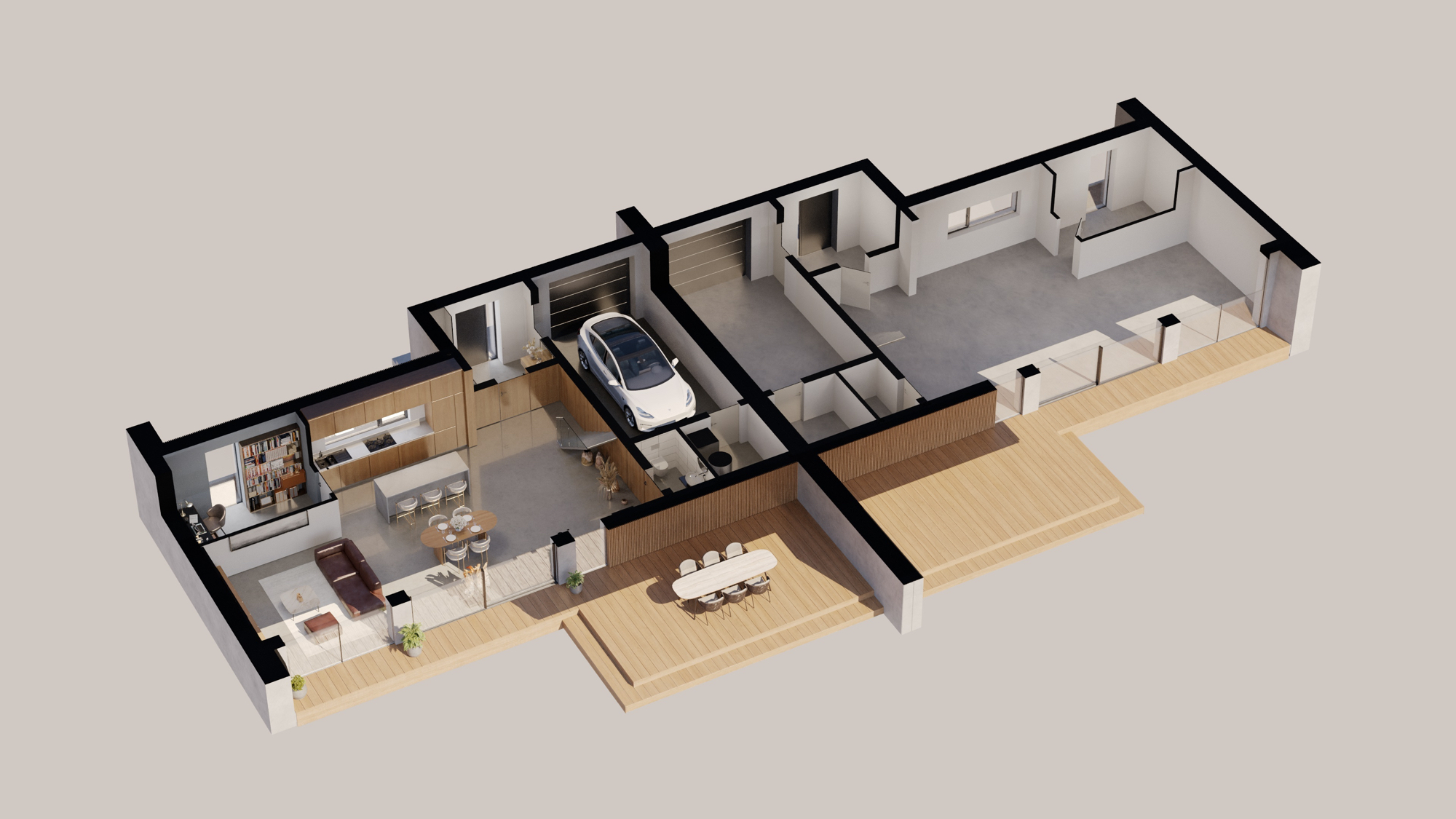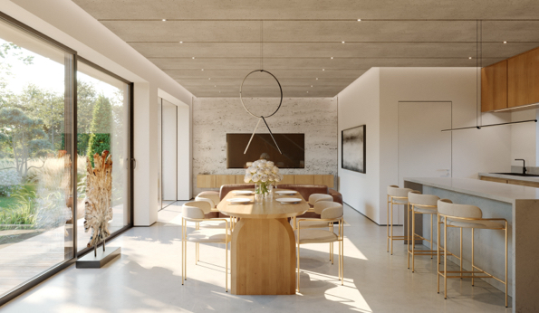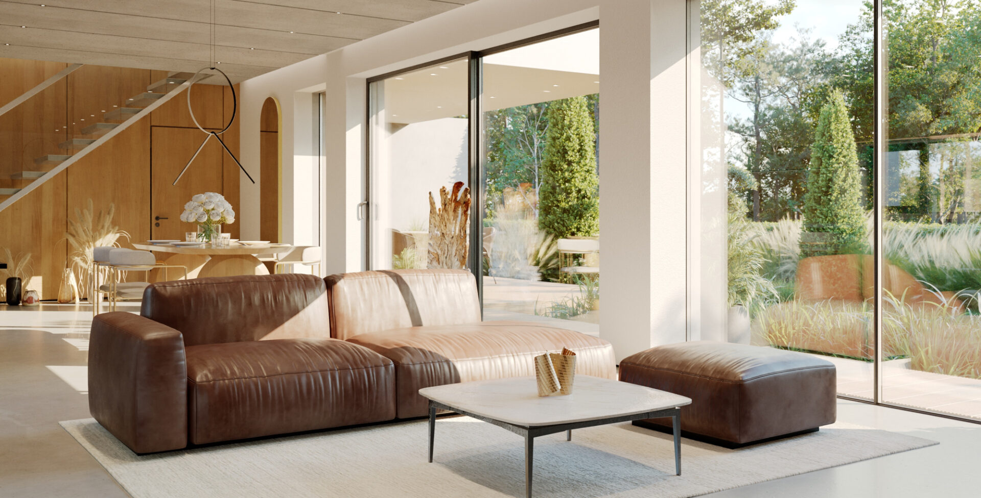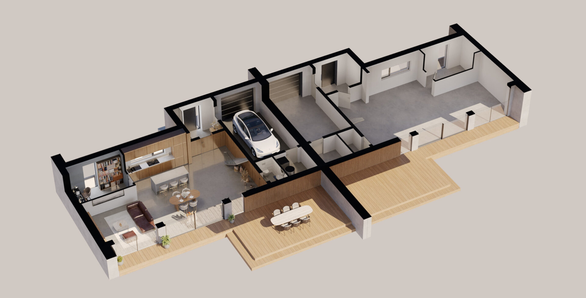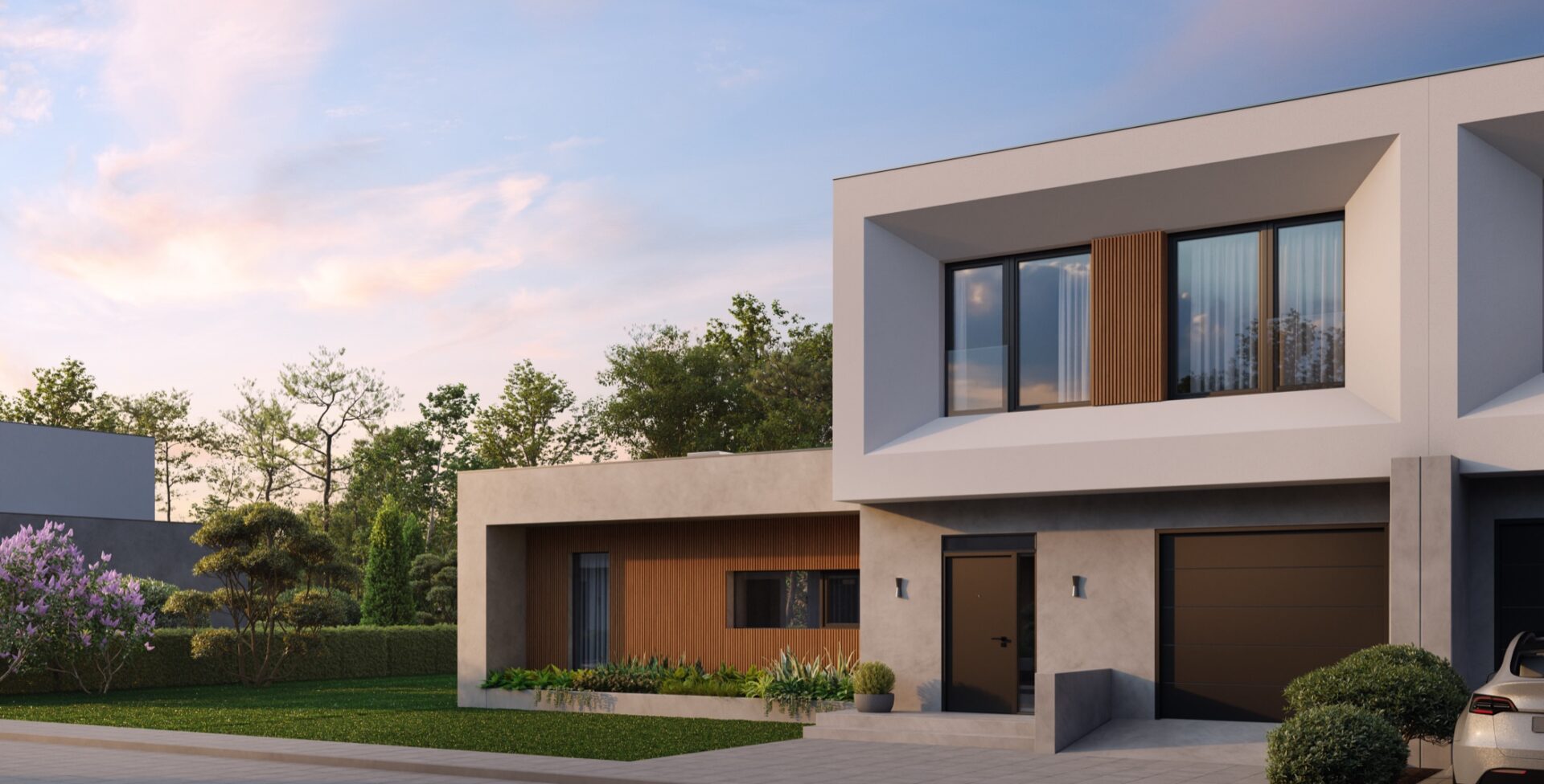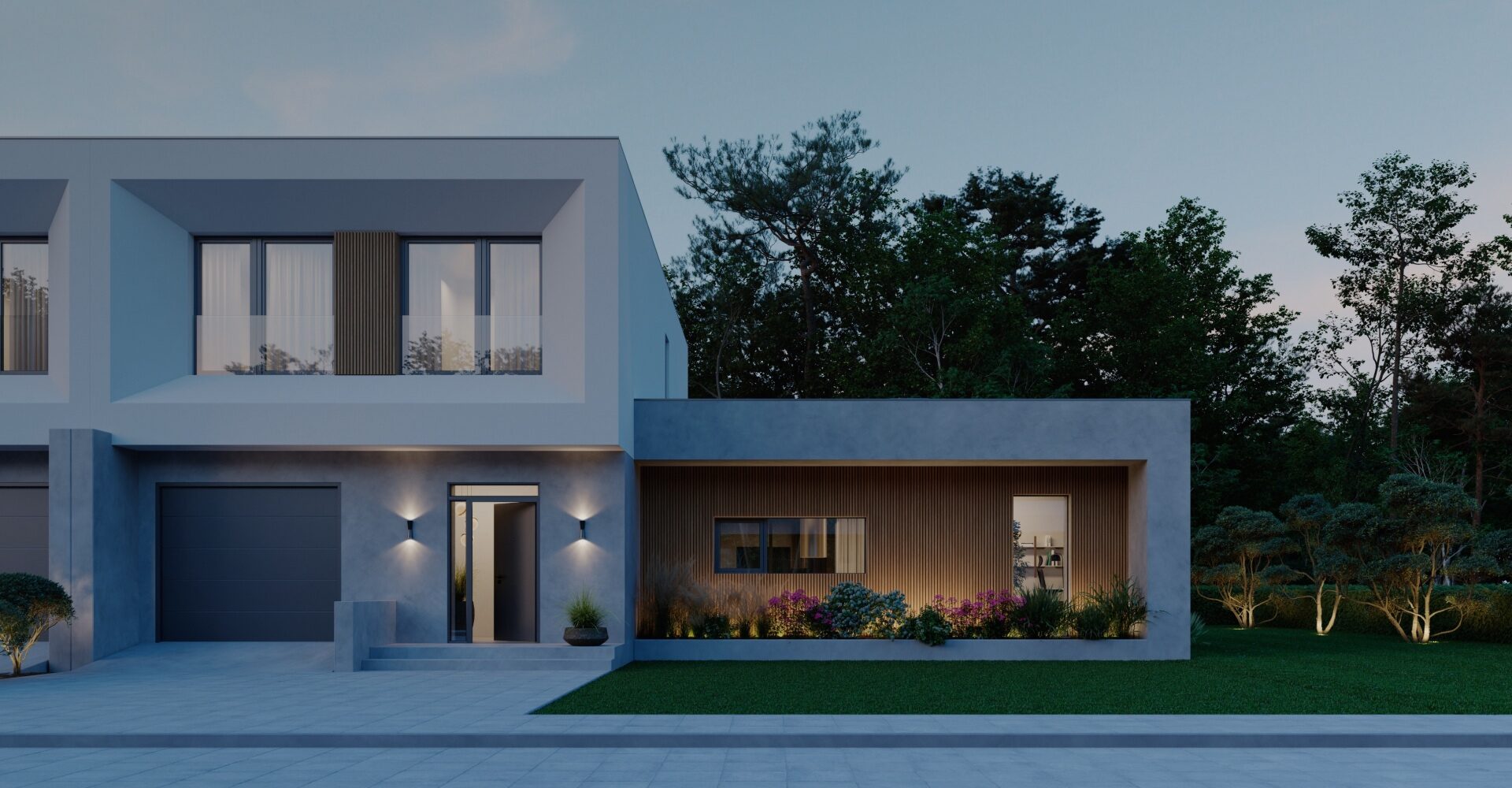 Mody przemijają. Dlatego design domów w Podleśna Homes jest nie tylko nowoczesny, ale przede wszystkim ponadczasowy. Spektakularna bryła budynku z „wiszącym” pierwszym piętrem to dopiero początek. Panoramiczne aluminiowe okna tworzące duże przeszklenia, elementy z betonu architektonicznego czy elewacje z drewna definiują architektoniczny styl Twojego nowego domu.